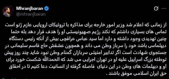 В Тегеране был предотвращён заговор с целью убийства главы МИД Ирана Аббаса Аракчи Об этом сообщил советник министра Мохаммад Хоссейн Ранджбаран. Моссад не дремлет, ставка на террор и диверсии. Николай Стариков 👉🏻 Школа @nstarikov_bot Геополитики
