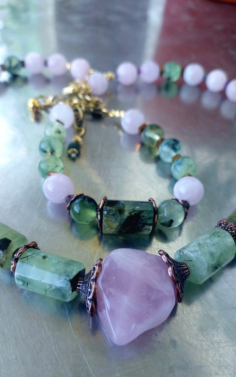 Давно не показывала украшения, не успеваю сфотографировать до постановки программы, а после уже не надо выкладывать. Этотому набору повезло, буду его заряжать завтра, на Летнее Солнцестояние. Ещё надо успеть сегодня один браслет и себе что-то - тоже успеть зарядить энергией нового солнца! Этот пост вечером удалю. ❤️ Комплект "Стремление к солнцу" Раскрывает центры любви и творчества. 1. Розовый кварц является символом чистой любви и оберегает ее от разрушения. Вызывает к его владельцу интерес противоположного пола, раскрывает в женщине творческий потенциал. 2. Флюорит ( маленькие бусинки между розовым кварцем) активирует нашу 7-ю чакру на выдачу и получение информации любого плана. Он помогает любому нашему желанию мгновенно попасть в информационное поле. Здесь и проявляется «fluor» — лёгкое течение мысли. И там, в поле, мысль, «подгоняемая» флюоритом, работает, как поисковик в компьютере — мы ещё не знаем, с кем и как правильно подступиться к осуществлению наших планов, а флю