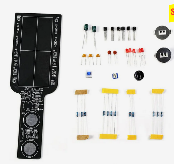 Недавно разбирал один агрегат, и на землю в траву упал очень ценный винтик. Несмотря на то, что даже приблизительно знал, куда шельмец укатился, пришлось искать его около 10 минут, что не очень приятно. Вспомнил, что приятель подарил мне на днюху вот такой наборчик, зная о моём пристрастии собирать всякие штучки: Не рекламирую данный товар, а констатирую факт! Каждый вправе покупать или принимать в подарок то, что ему нравится. В описании говорится, что такой металлоискатель способен сигнализировать о наличии железных предметов на расстоянии до 5см. Ну что ж, надо собрать и проверить. Все детальки оказались в наличии, даже резисторов положили на один больше. Сборка заняла с перекурами и отвлечениями на другие дела около часа.