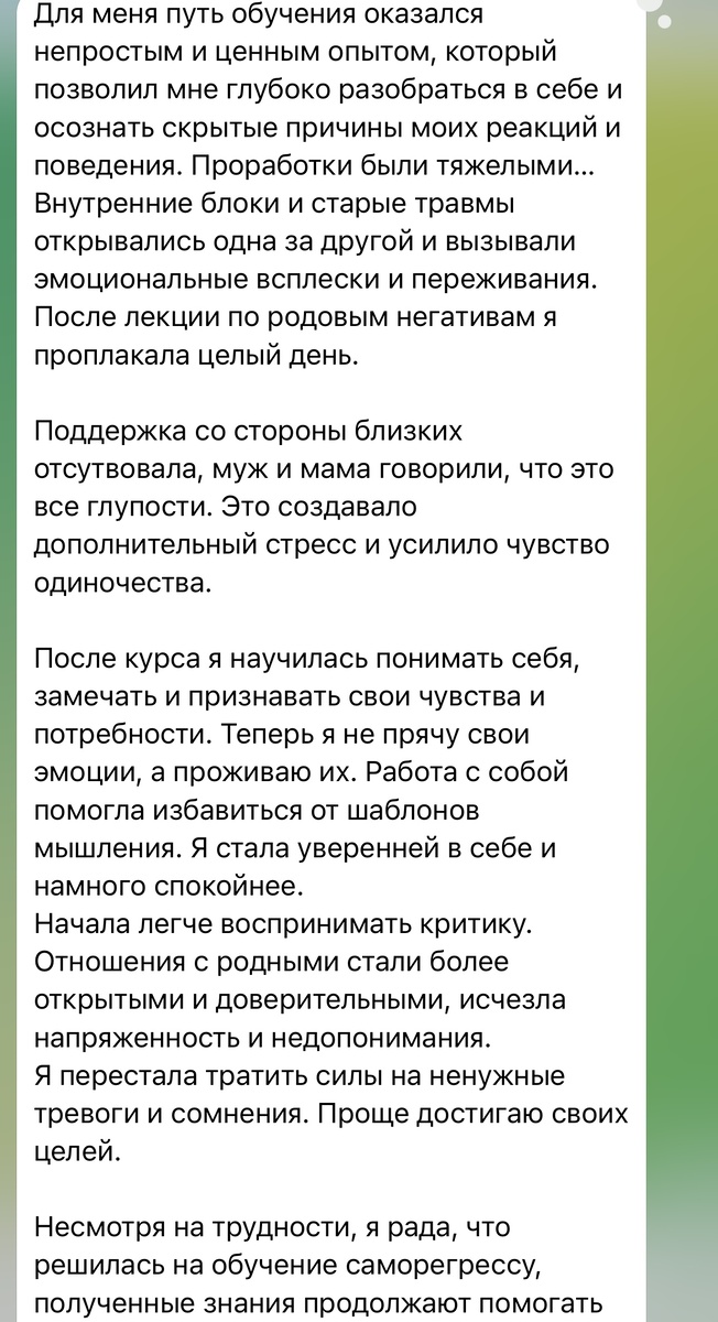 Работа с собой — это всегда нелегко… Хочу поделиться с вами замечательным отзывом ученицы первого потока курса по саморегрессам ❤️ Очень горжусь своими учениками, которые решились на изменения в своей жизни и, несмотря на трудности, твердо стоят на своем. 📌 Ознакомиться с программой курса по саморегрессам вы можете по ссылке: https://lileeva-centr.ru/samoregress Стартуем уже 25 июня 🚀