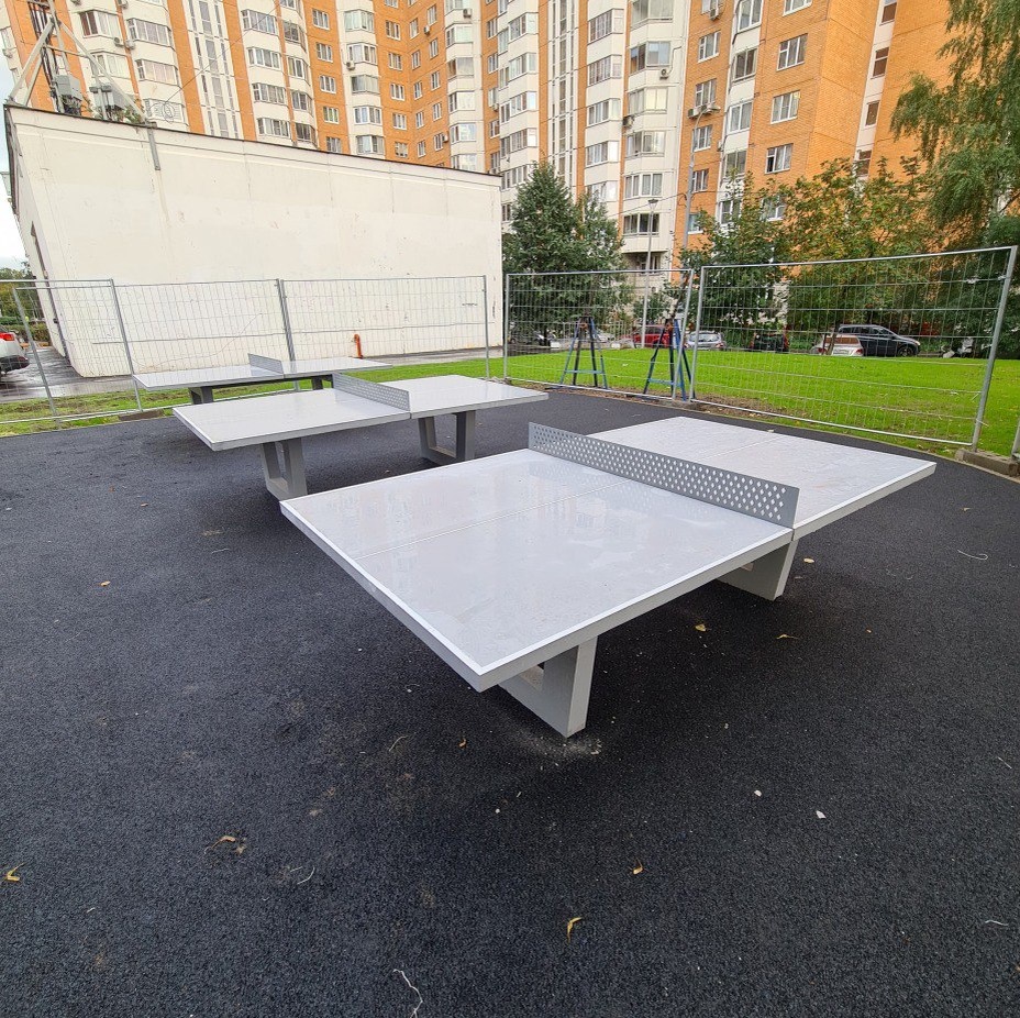 🏓 9 бетонных гигантов по 600 кг: как мы вручную собирали теннисные столы для школы — и почему такие столы прослужат десятилетия. Произвели и установили для школьного двора в Москве. 🤯 Работа масштабная и интересная — делимся деталями 👇 📏 Размер каждого стола: 1,5 × 2,7 метра. ⏱ Срок изготовления: 2 месяца 🔩 Вес: 600 кг. ✔ Сетка — из нержавеющей стали, вырезана по техзаданию на ЧПУ-станке и сварена вручную. ✔ Разметка нанесена белой спецкраской, стойкой к погоде и нагрузкам. ✔Использовали 2 манипулятора, но технику подвести было невозможно — покрытие мягкое, не хотели испортить. Поэтому переносили вручную — 12 человек на каждый стол. ☁️Установка заняла несколько дней. Столы установлены на резиновое покрытие, ножки закрыты крышками с металлическими закладными — всё надёжно, всё по уму. Приварили закладные — и готово. 💪 Получилось не просто надёжно, а стильно и долговечно. Школа довольна, мы — тоже. 📌Производим изделия из стеклофибробетона под заказ: от архитектуры до уличног