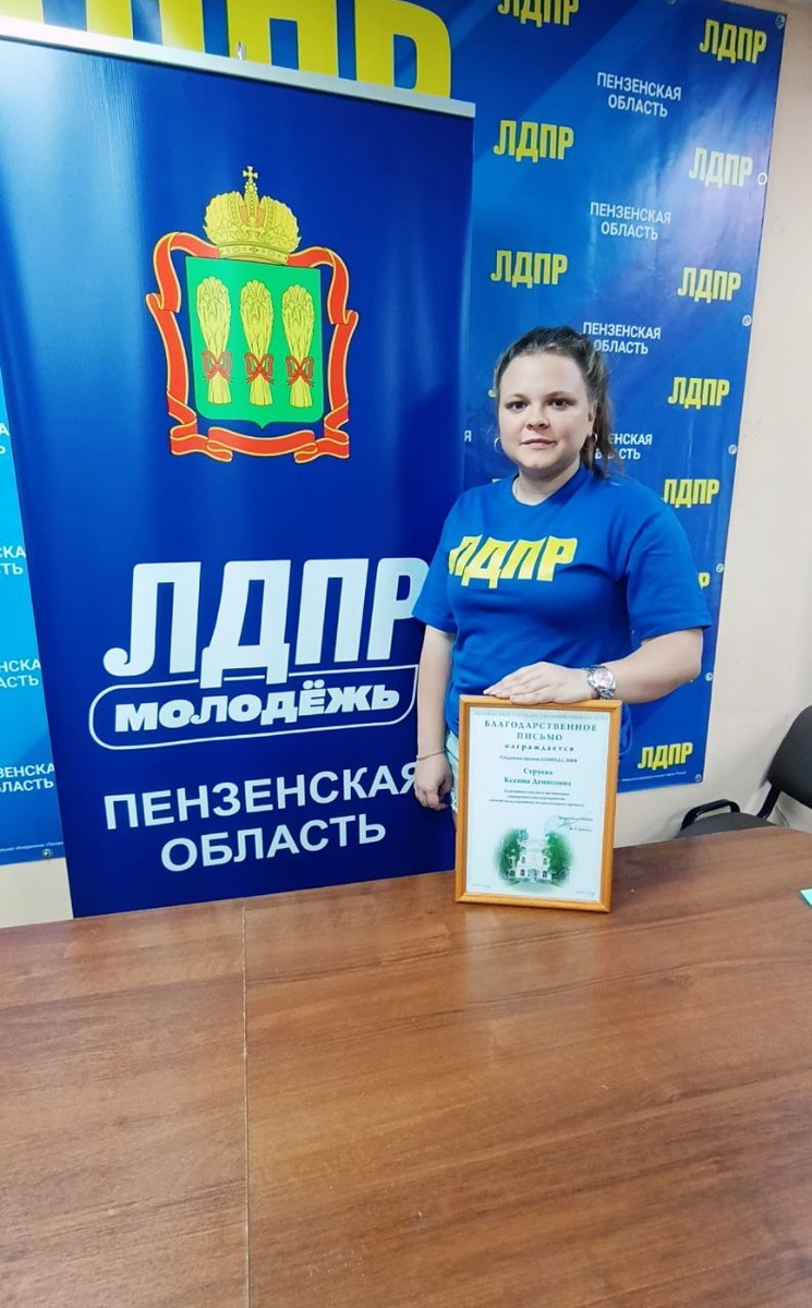 Руководителя Молодёжки ЛДПР | Пензенская область Ксению Струеву наградили за успешную организацию университеттетских мероприятий