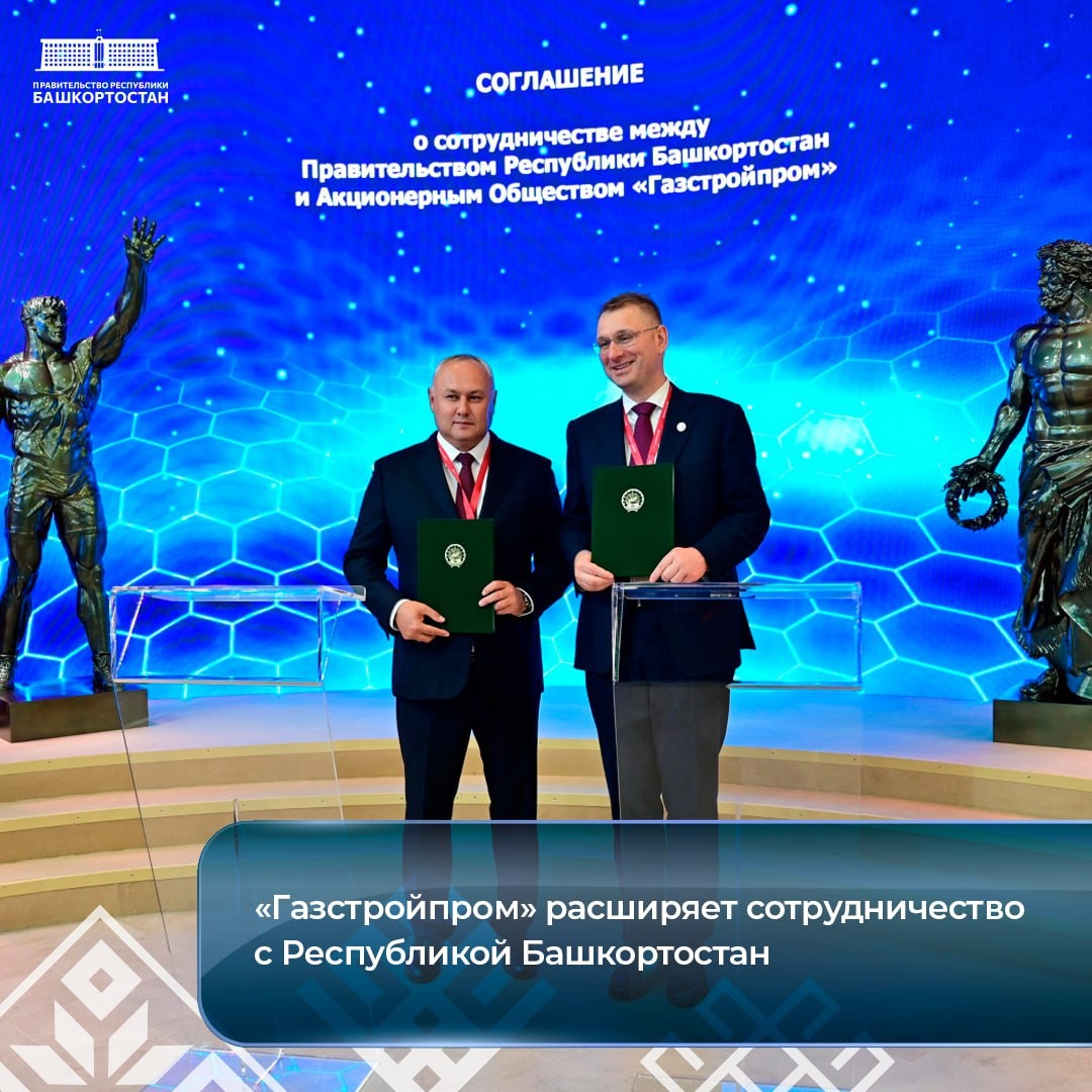 «Газстройпром» расширяет сотрудничество с Республикой Башкортостан На полях ПМЭФ генеральный директор АО «Газстройпром» Николай Ткаченко и заместитель Премьер-министра Правительства Республики Башкортостан – министр промышленности, энергетики и инноваций Александр Шельдяев подписали Соглашение о сотрудничестве. ℹ️ Главная цель документа — укрепление партнерских отношений и развитие долгосрочного, взаимодействия в области строительства и реконструкции промышленных объектов, а также в сфере применения продукции предприятий Башкортостана. — «Газстройпром» — важный деловой партнер для Башкортостана. Наша общая цель — построение долгосрочного и эффективного сотрудничества в сфере строительства и реконструкции объектов нефтегазовой отрасли, — отметил Александр Шельдяев.