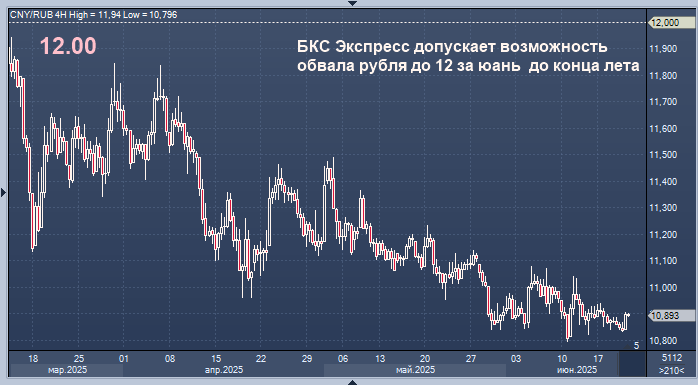 БКС Экспресс допускает возможность обвала рубля до 12 за юань до конца лета Курс доллара к рублю расчётный, фьючерс, вечный фьючерс и межбанк. Курс евро к рублю расчётный, фьючерс, вечный фьючерс и межбанк. Курс юаня к рублю биржевой, фьючерс, вечный фьючерс и межбанк. Курс пары юань/рубль может уйти в диапазон 11,5-12 руб. за юань на горизонте до конца текущего лета, говорится в материале эксперта Михаила Зельцера на портале БКС Экспресс. Китайская валюта может пойти на восстановление на фоне перспектив сужения экспорта, расширения импорта, корректировки бюджетного правила и секвестра ключевой ставки ЦБ РФ, отмечает он. "По нашим оценкам, на внебиржевом рынке сейчас формируется "пологое дно" перед разворотом курсов. Ориентиры на сезон - возврат доллара в область 85-90 руб./$1, евро может вернуться в границы 95-100 руб./EUR1. Верхние уровни прогнозных диапазонов вероятны ближе к концу лета", - пишет Зельцер. Настоящее сообщение содержит мнение специалистов инвестиционной компании или б