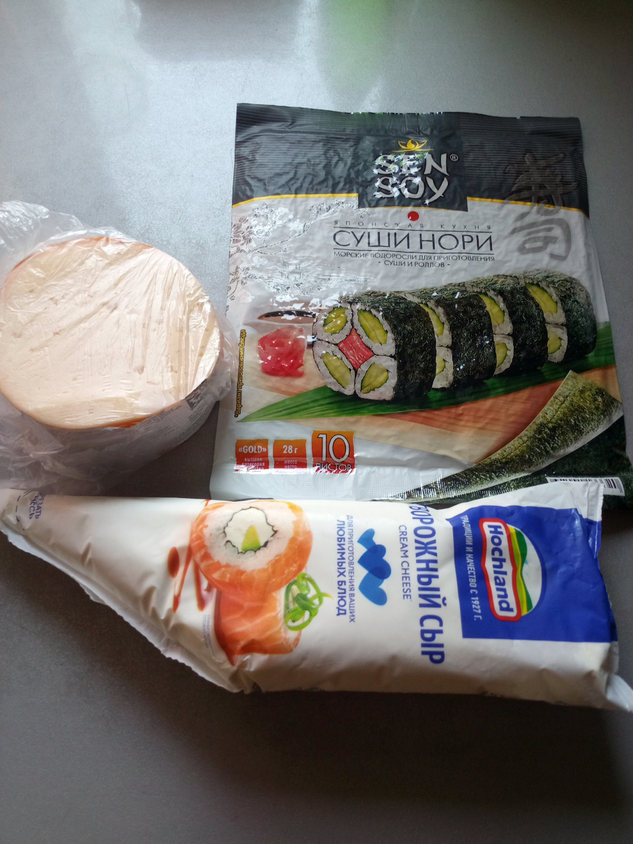 А вот дальше… дальше надо что-то смастерить. Выпечка вся тю-тю, закончилась! Вчера сын в райцентре листья нори и творожный сыр прикупил.