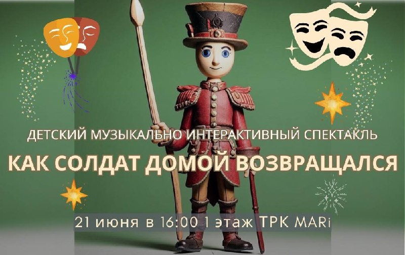 Детский музыкально интерактивный спектакль от Московского музыкально-драматического театра Антреприза 🗓 21 июня в 16:00 💸 бесплатно 📍 ул. Поречная, 10, 1 этаж Много чего происходит на пути домой со службы с Солдатом, но наша история о том, как с помощью солдатской смекалки, песен и помощи юных зрителей, он разберется с Бабой-Ягой, Лихим и прочей лесной нечестью! Ребята увидят, как с их помощью снова оживет лес, а солдатские песни заиграют веселей! ➡️ ПОДРОБНОСТИ ⬅️ ❗️ Москва для детей