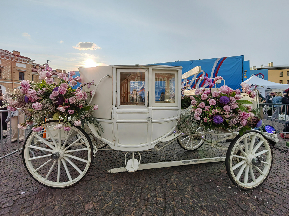 После чего все красиво оформленные экспозиции прибыли на Соборную площадь Петропавловской крепости, где превратились во временную цветочную выставку (фото-зоны) на 4 дня.