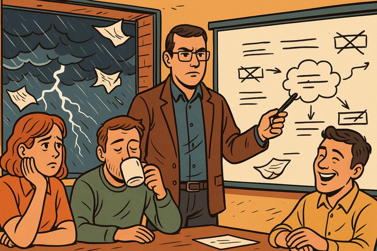 Пятница. Отличный день, чтобы поговорить о чем-то... не совсем пятничном. О том, что болит у каждого, кто ведет людей за собой. О том моменте, когда на стол ложится отчет "все плохо", а на тебя смотрят глаза команды, полные немого вопроса: "Ну, шеф, и что теперь?" И вот тут начинается тонкая грань между "все путем!" (которому уже никто не верит) и "мы все умрем" (после чего работать точно никто не будет).