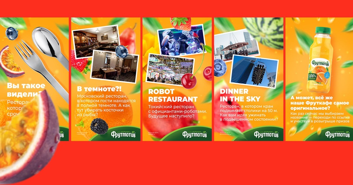 Дополнительно, на протяжении всего срока проведения спецпроекта, мы привлекали к нему внимание с помощью тематических сторис, оформленных в стиле "Фруткафе".