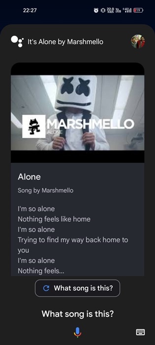 Хотя приложения для идентификации песен/музыки великолепны, они вам не нужны, если вы используете последнюю версию Android. Последние версии Android могут легко распознать песню, которую вы ищете, и предоставить соответствующую информацию.