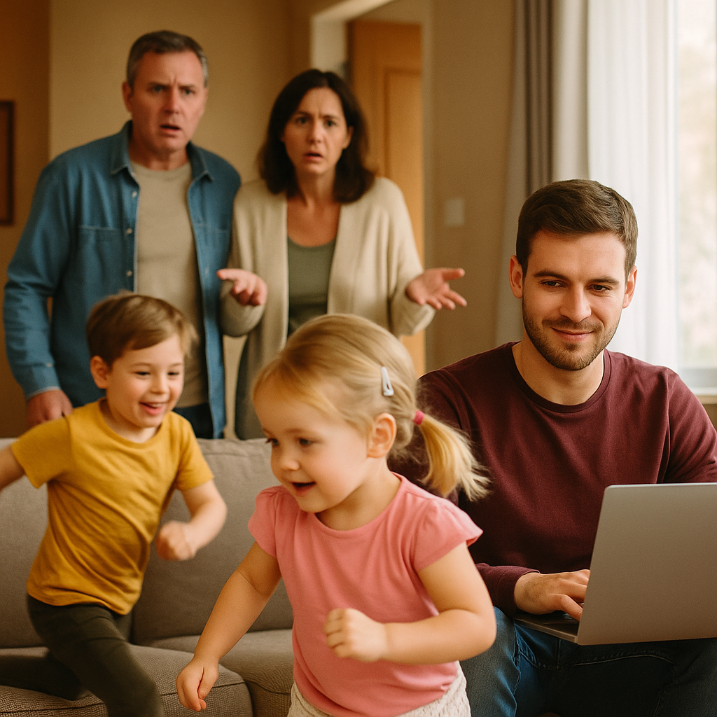К концу недели терпение Ларисы трещало по швам. Дети носились по квартире с утра до ночи, Алина готовила в их кастрюлях какую-то странную еду, а Игорь занял гостиную под свои "дела" — весь день сидел за ноутбуком и громко разговаривал по телефону.