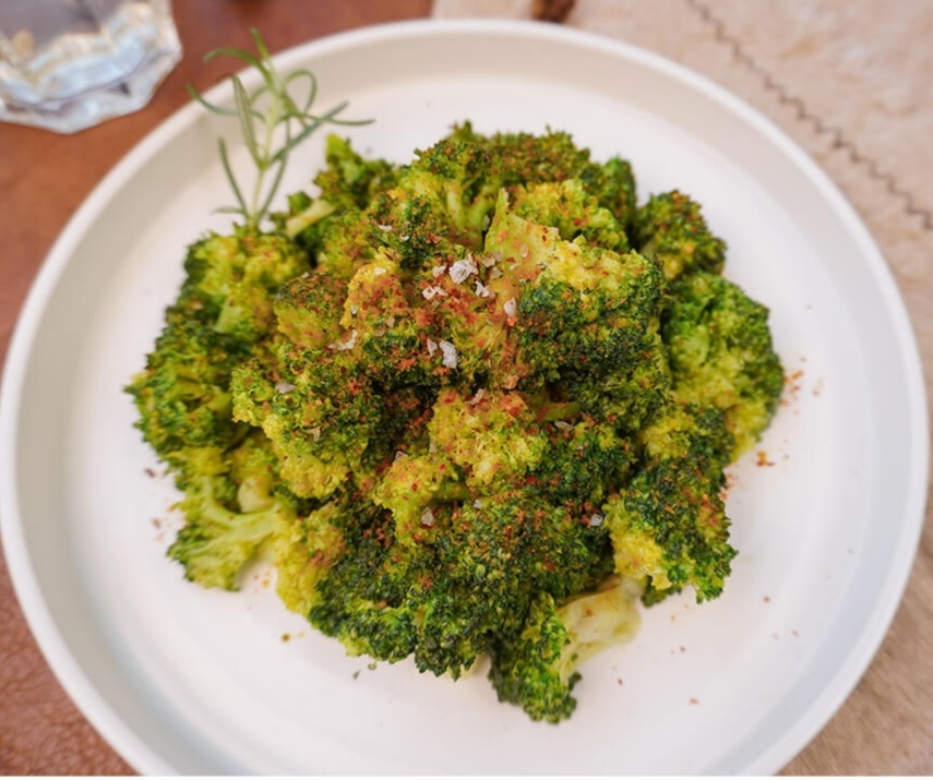 Ингредиенты: брокколи - 250 г. оливковое масло - 50 г. соль - 10 г. молотая куркума - 5 г. порошок чили - 5 г. лимон - 1 шт. Приготовление: Вытащите корзину, смешайте брокколи с оливковым маслом и солью и положите в корзину. Задвиньте корзину обратно в аэрофритюрницу. Запустите программу на 10 минут при 180 градусах. После приготовления посыпьте брокколи куркумой и порошком чили по вкусу и добавьте немного лимонного сока.