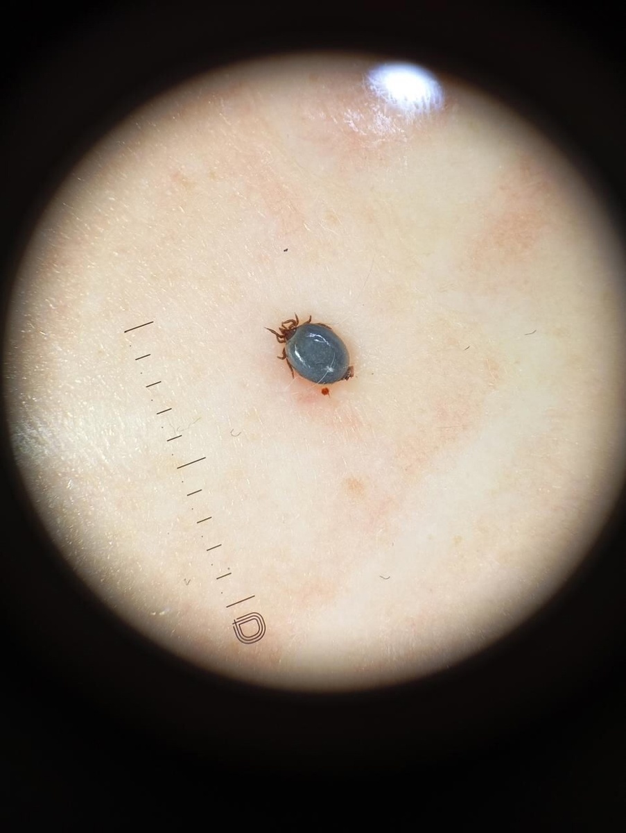 Недавно к нам обратилась пациентка с обеспокоенностью по поводу изменения родинки. Она рассказала, что родинка, ранее светло-коричневого цвета, стала черной, что вызвало у нее беспокойство. Наш врач хирург-онколог, после внимательного осмотра с использованием дерматоскопа, заметил подозрительные изменения. Особенное внимание было уделено наличию "усов" вокруг родинки, что указывало на необходимость дальнейших действий. С пациенткой обсудили важность внимательного отношения к своей коже, особенно летом, когда риск развития кожных заболеваний увеличивается. Образование было проверено на дерматоскопе для более точного определения природы изменения родинки. После проведения процедуры осмотра, стало ясно что это не образование, а клещ, "подозрительное образование" было удалено и отправлено на анализ на специфические инфекции. Теперь мы ожидаем результаты, чтобы обеспечить пациентке наилучшее лечение и поддержку. Эта история подчеркивает важность регулярных осмотров и своевременного обращени