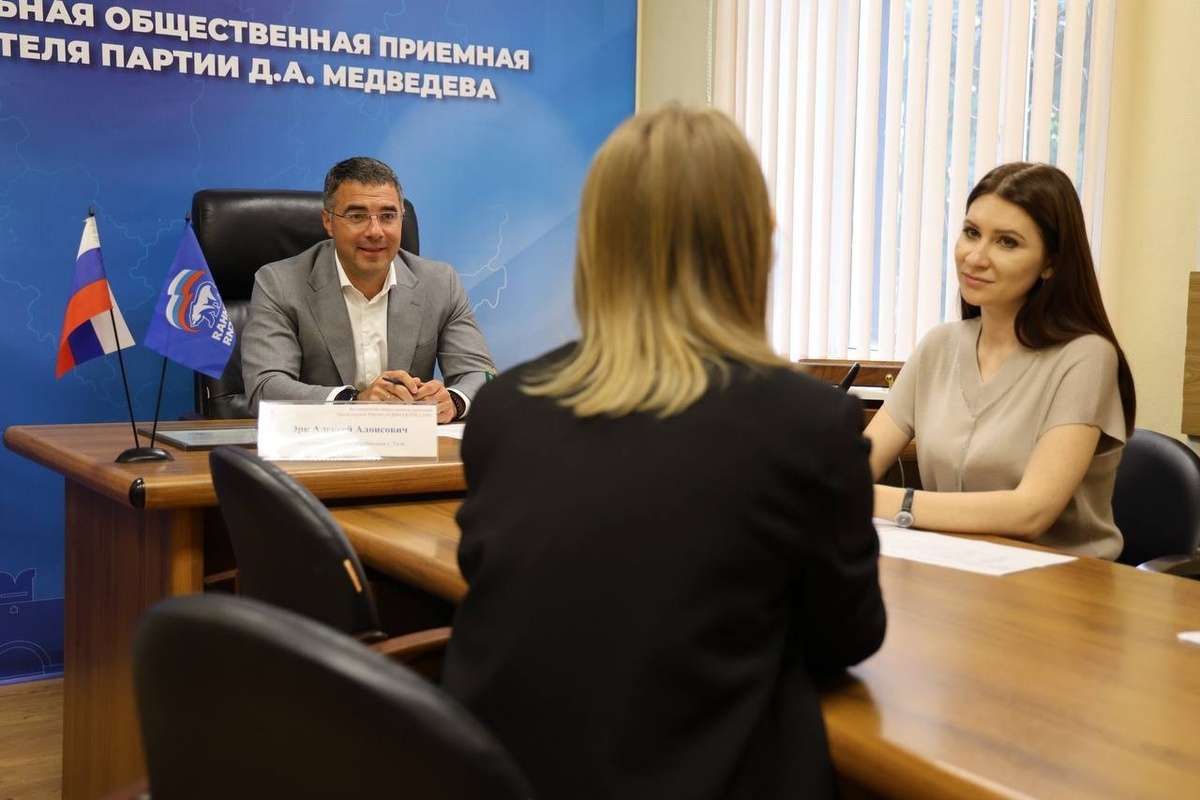 Глава города Тула Алексей Эрк провел прием граждан в региональной общественной приёмной председателя партии «Единая Россия» Д.А. Медведева. Большая часть тем, затронутых в ходе приема, касалась поддержки участников специальной военной операции. Так, на прием обратилась супруга военнослужащего с позывным «Сармат». Ранее по просьбе военнослужащих для их подразделения приобрели промышленную лесопилку и автомобиль «Нива». Женщина поблагодарила за помощь и показала видео, на котором бойцы благодарят жителей Тульской области, губернатора Дмитрия Миляева и главу Тулы. «Поступила новая просьба от ребят приобрести мотоцикл. Решим этот вопрос в ближайшее время», - подчеркнул Алексей Эрк. Кроме того, за помощь в приобретении медикаментов для медроты и квадрацикла с прицепом поблагодарили волонтеры. «Честью было получить благодарственное письмо от руководства и личного состава СОБР «Сплав» Управления Росгвардии по Луганской Народной Республике. Счастлив, что имею возможность вместе с единомышленни