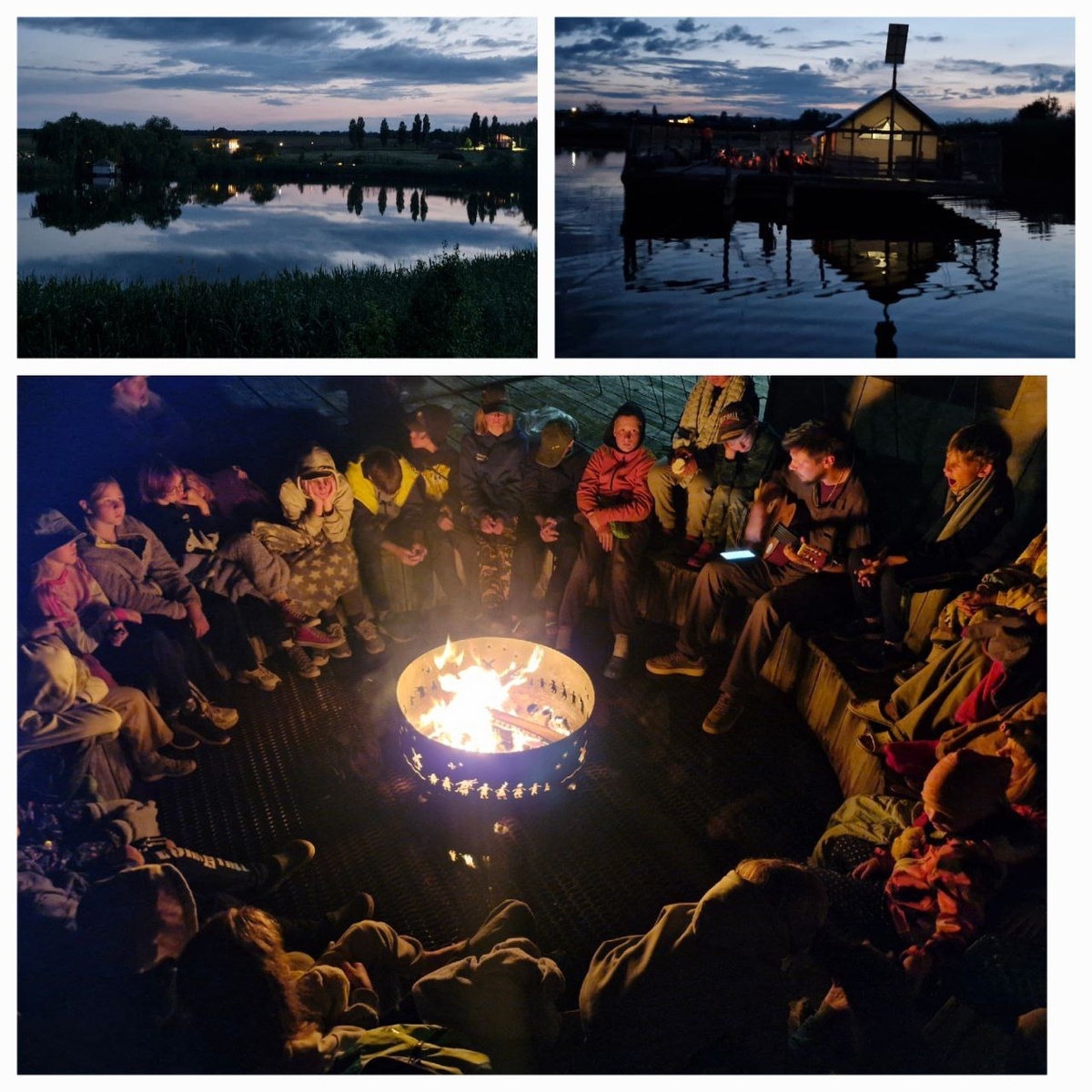 Последний вечер мы провели очень необычно! Нигде ещё такого не видела, костровое место посреди водной глади. С берега на небольшом плоту переправляемся на большой понтон, посреди которого оборудовано костровое место, для огромной компании, как раз такой, как наша. На этом понтоне даже можно жить, там стоит глэмпинг с кроватями. Виды с него потрясающие, костёр отражется в воде, соловьи и хор лягушек пытаются перепеть друг друга. Но, перепели их мы)