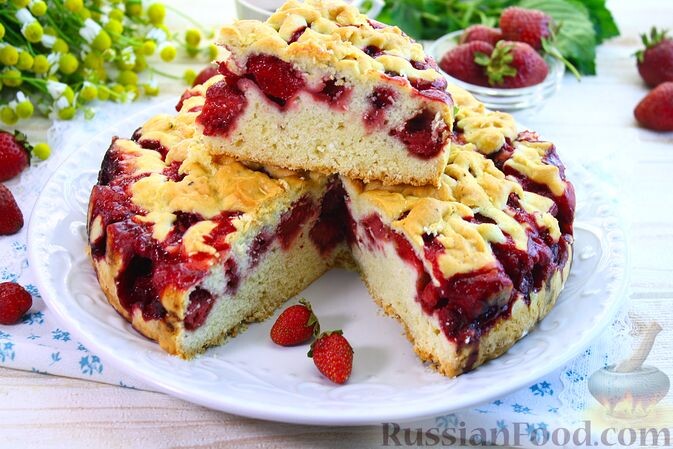 Тёртый пирог с клубникой. Дрожжевая галета с грибами и сыром. Песочный штрудель с капустой. Краковский сырник. Пирог "Жербо" с орехами, джемом и шоколадом. Дрожжевая галета с грибами и сыром – вкуснейший открытый пирог из дрожжевого теста на кефире. Для грибной начинки отварные маслята обжариваются с луком. Сверху начинка посыпается сыром и поливается сметаной. После выпекания пирог мягкий, с хрустящей корочкой. Песочный штрудель с капустой. Штрудель – рулет из тонкого теста, чаще всего со сладкой начинкой, но есть и несладкие варианты. Традиционно штрудель готовят из вытяжного теста, однако рассыпчатый рулет из песочного теста на сливочном масле получается не менее вкусным. Начинка простейшая – только тушёная капуста, соль и перец. Краковский сырник – польский десертный пирог, который сочетает в себе нежную творожную начинку и хрустящее песочное тесто. Формируется пирог с фирменной решёткой сверху. Обычно в краковский сырник добавляется изюм, но в данном варианте используется рублены
