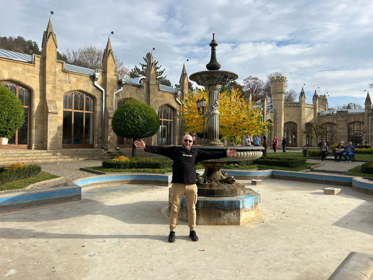 Берем кружку, да побольше и идем в Нарзанную галерею за глотком живительной минералки. Но сначала легкий променад по Курортному бульвару, это пожалуй, самое интересное место в городе. Изначально планируясь как витрина города-курорта, он не растерял своей помпезности за столетия. Интересно, что здесь можно встретить здания из разных эпох - и главное здание Нарзанных ванн в стиле модерн (хоть и симметричное), и здание Октябрьских ванн - образец конструктивизма 20-х, где на барельефе рабочие вместо серпов и молотов несут полотенца навстречу чистому и светлому будущему, и вполне себе современные постройки. И при всем этом не возникает какого-то диссонанса. Даже наоборот, видно, как город, переживая разные времена, будто делал определенные засечки постройками различных стилей и эпох. Но главным зданием в ансамбле Курортного бульвара является Нарзанная галерея. Архитектор решил поиграть словами и реально построил здание в форме ключа. Это довольно забавно. Самое здание возведено в стиле псев