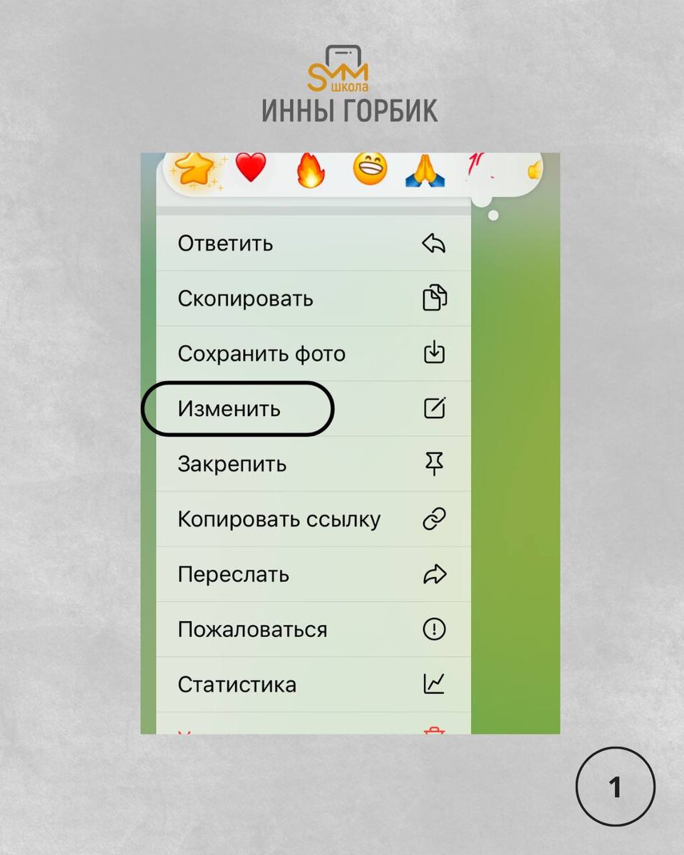 🔝Как поменять фотографию в посте в телеграм канале? Многие думают, что это невозможно, но это не так, заменить фото можно в уже опубликованном посте! Для этого: 🔝1. Зажимаем пост и выходит меню - нажимаем изменить или редактировать (скрин 1); 🔝2. После нажатия пост переходит в режим редактирования и слева появляется кнопочка с квадратиками и стрелочками (скрин 2); 🔝3. Когда мы нажимаем на кнопку с квадратиками и стрелочками - появляется возможность выбрать другое фото из галереи или сделать фото прямо сейчас (скрин 3); 🔝Полезно?