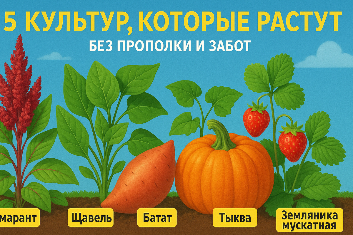 Мечта любого дачника — грядка, которую не надо полоть. Звучит как сказка? А вот и нет! Существует несколько культур, которые сами справляются с сорняками, не боятся жары и почти не требуют ухода. Вот 5 настоящих героев огорода, которые работают за вас: Красивый, как клумба, и стойкий, как солдат. Амарант быстро вырастает в крепкое растение, своими мощными листьями затеняет всё вокруг — и сорнякам просто не остаётся шанса.
