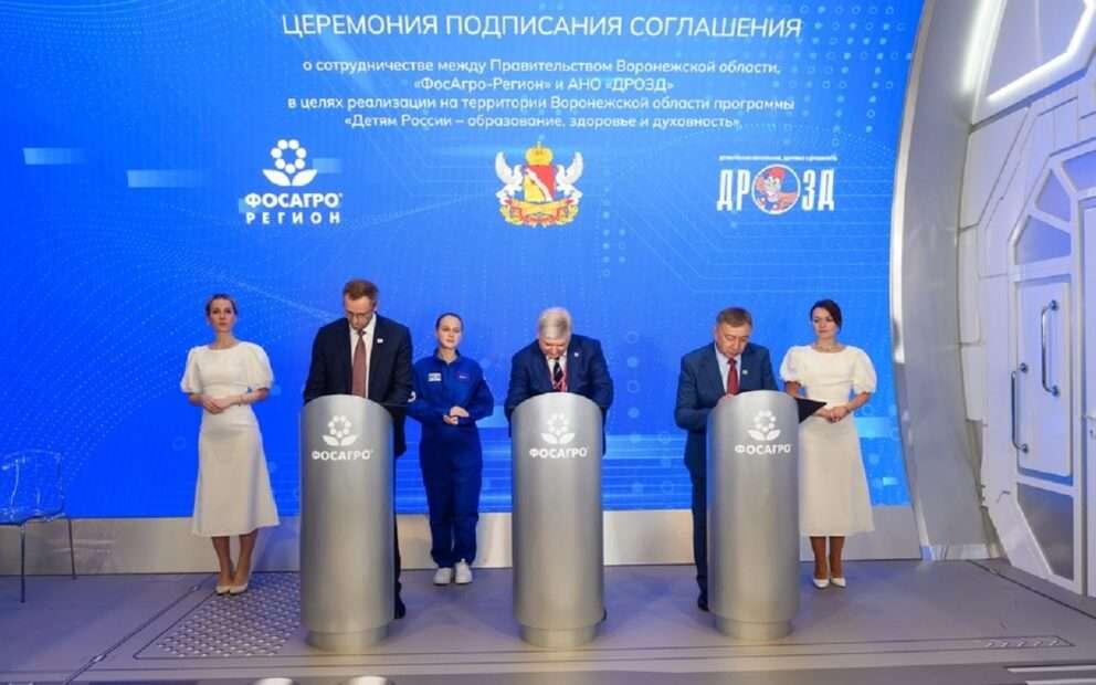 На XXVIII Петербургском международном экономическом форуме в четверг, 19 июня, было заключено соглашение о сотрудничестве между правительством Воронежской области, АНО «ДРОЗД» и компанией «ФосАгро-Регион» в части расширения детского спорта в регионе.