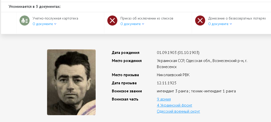 Согласно справки Главного управления кадров от 31 июля 1950 г., "Статью 79 приказа ГУФ КА №01254-42 г. в отношении интенданта 3 ранга Гринман Израиля Матвеевича - помощника начальника отдела снабжения горючим 9 армии, исключенного как пропавшего без вести16.7.42 г., который жив приказом Прикарпатского военного округа №0133 от 15.7.45 г. уволен в апас и состоит на учёте в Николаевском ГВК.