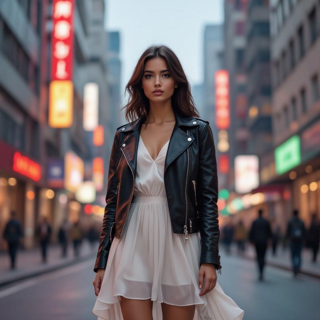 Сочетание кожаной куртки с романтичными вещами