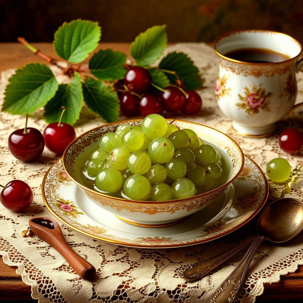 ✔ Элегантность – подавали его в фарфоровых розетках, как дорогой десерт. Хотите приготовить варенье, которое могло бы оказаться на столе у императрицы? Вот проверенный вариант: 1. Крыжовник промойте, удалите хвостики. 2. Вишнёвые листья залейте кипятком на 10 минут – это даст насыщенный аромат. 3. Сварите сироп: