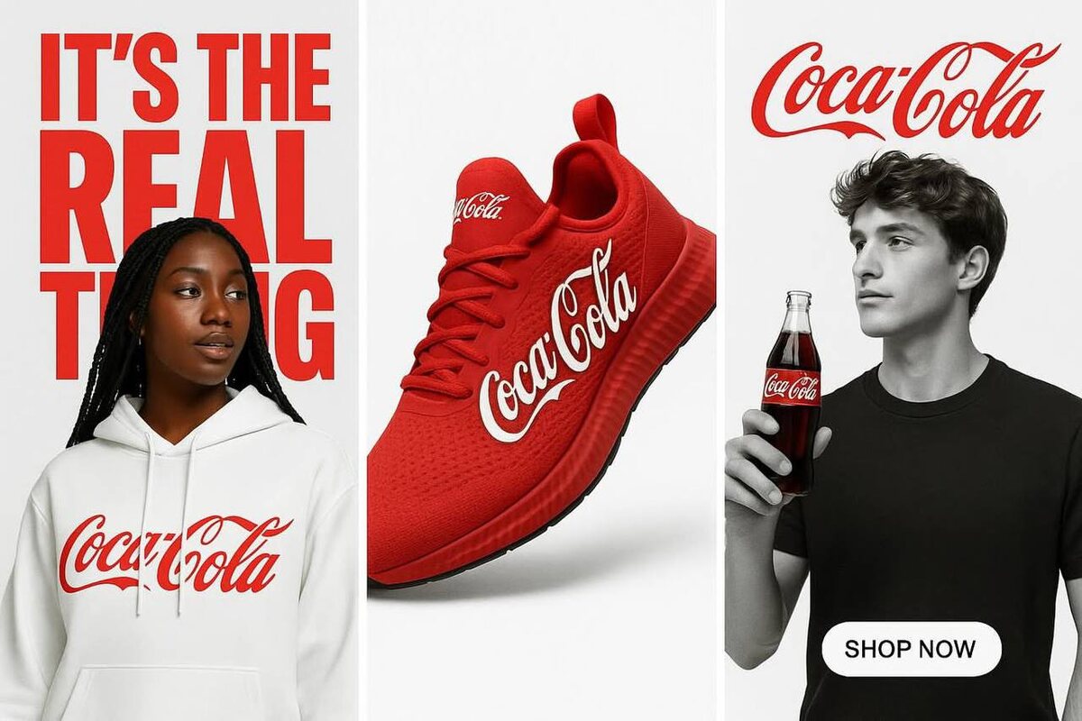 • Центральная панель: Крупный план ключевого продукта бренда (например, кроссовки, технологичный предмет или основной визуал). Чистый фон, минимальные тени, чёткие детали.