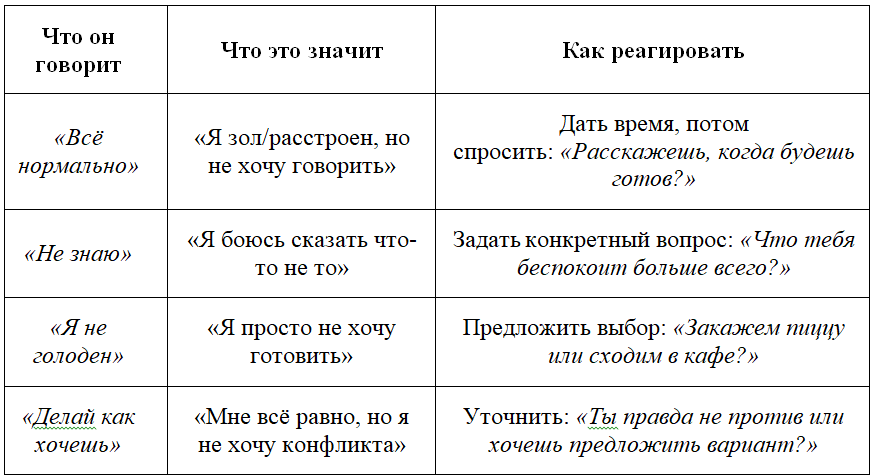 → Скажите: «Я была неправа. Давай обсудим, как избежать этого в будущем» Мужской мозг лучше воспринимает конкретные предложения, чем эмоциональные признания. Пример: