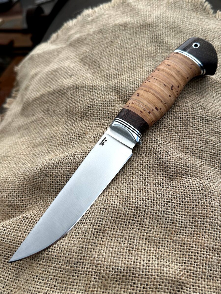 Нож Барс из отечественной нержавеющей кованой стали 95х18 с берестяной рукоятью
