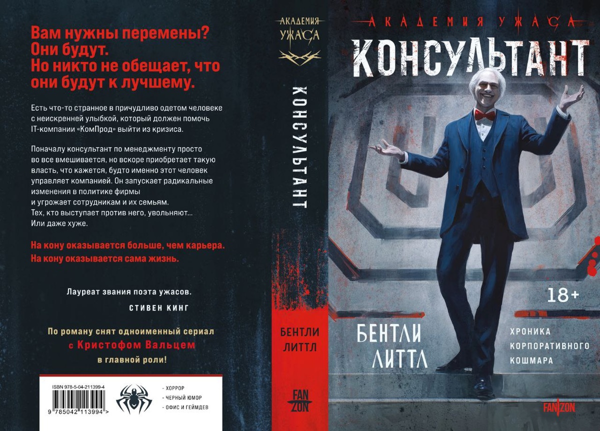 В августе издаем роман «Консультант» Бентли Литтла! Этот хоррор лег в основу одноименного сериала от Amazon Prime Video, режиссером которого выступил Дэниэл Эттиэс, а главную роль исполнил Кристоф Вальц. Бентли Литтл — лауреат премии Брэма Стокера, впечатливший даже Стивена Кинга. Нас ждет офисный триллер, перерастающий в кошмар. 📖 «КомПрод» в попытке выйти из кризиса нанимает консультанта Регуса Патова. Регус вмешивается во все задачи сотрудников, доводит все до нелепицы и полного абсурда. Постепенно он получает власть над всеми сферами жизни работников и угрожает семьям. На кону оказывается не просто место работы — сама жизнь. Ведь недаром говорят, что благими намерениями выстлана дорога в ад… «Лауреат звания поэта ужасов», — Стивен Кинг «Если и есть сегодня лучший писатель ужасов, то я не знаю, кто это, кроме как Бентли Литтл», — Los Angeles Times