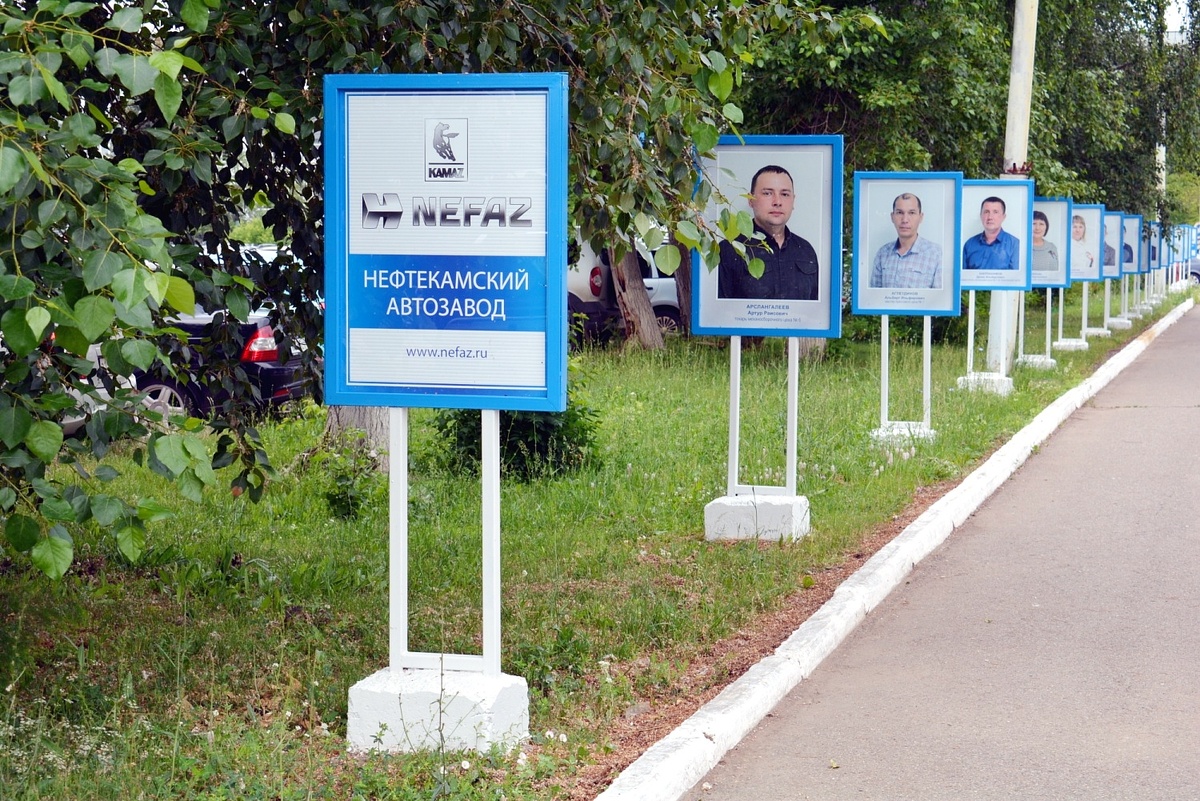 На Аллее Славы ПАО «НЕФАЗ» произведен косметический ремонт. Заводская Аллея Славы расположена вдоль пешеходного тротуара между центральной проходной и остановкой «Автозаводская». На Аллее традиционно размещаются фотографии лучших работников предприятия. В этом году она получила косметическое обновление. Металлические рамки конструкций были покрашены в фирменный синий цвет, а стойки и бетонные основания - в серый цвет. Все работы выполнили специалисты участка ремонта зданий и сооружений № 10.