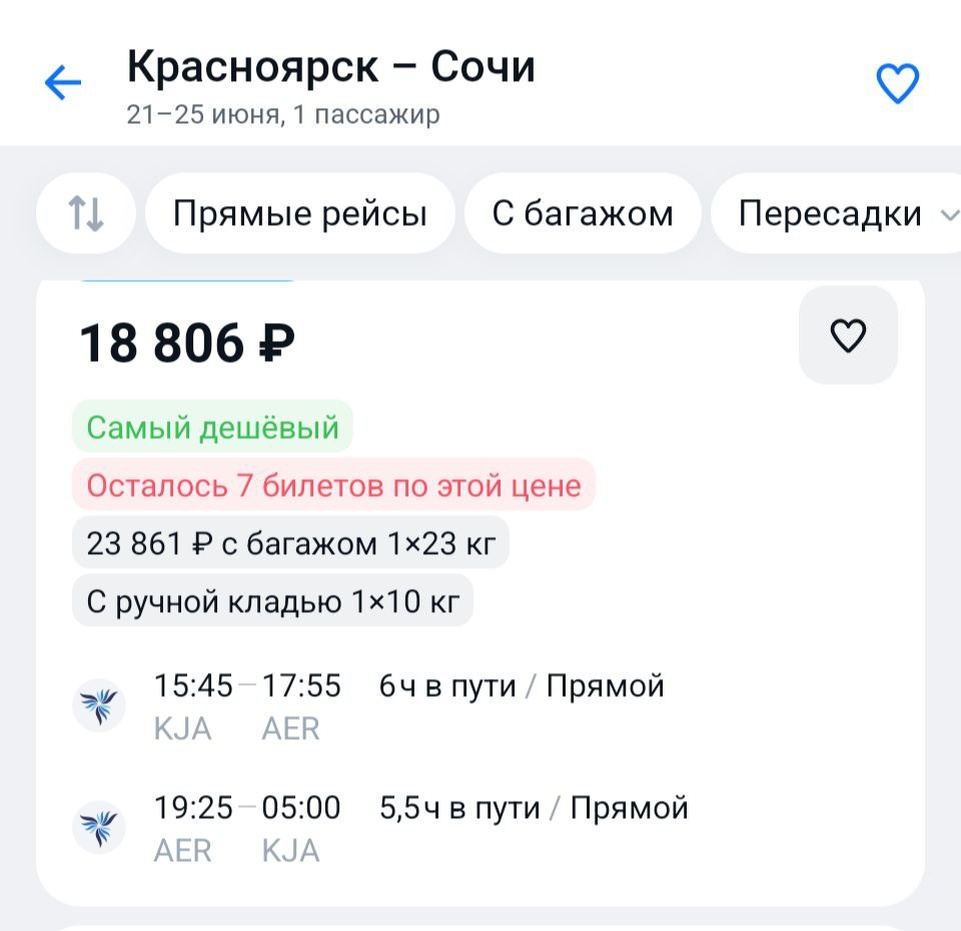 В Сочи на 4 ночи ) https://aviasales.tpm.lv/nOek4vKG #AER @KJA