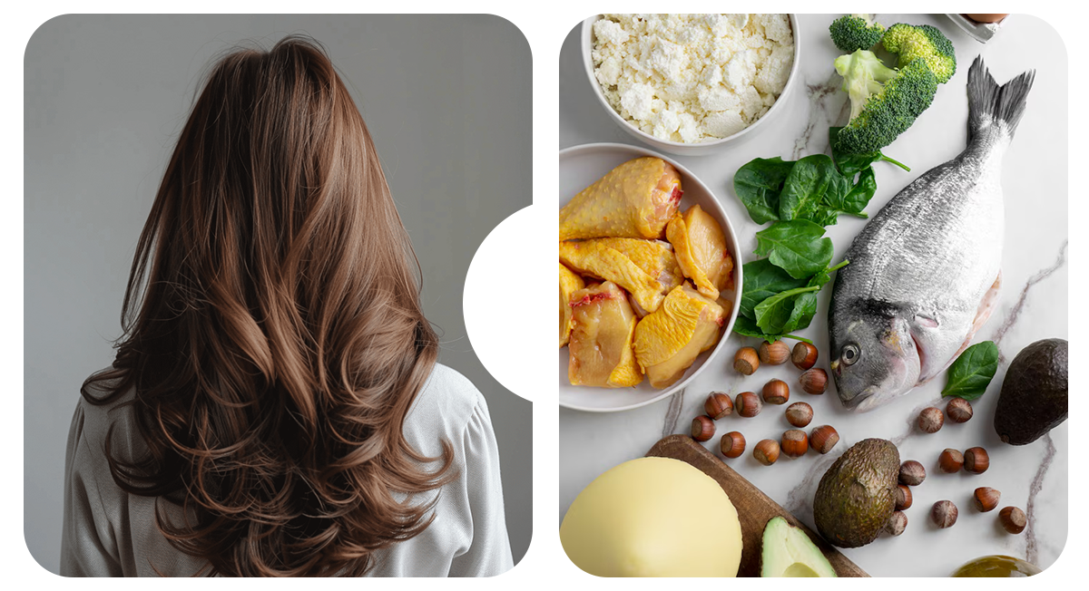 Важно, чтобы ты ежедневно получала достаточно белка, витамины группы B, железо, цинк, жирные кислоты омега-3. Они — строительные блоки для сильных и блестящих прядей.