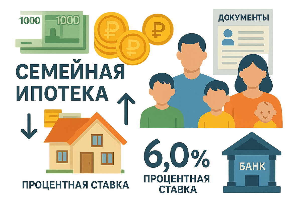 Программа для семей с детьми до 6 лет или с инвалидностью. Максимальная сумма — 12 млн рублей, срок — до 30 лет. Совет: сравнивайте полную стоимость кредита, а не только ставку.
