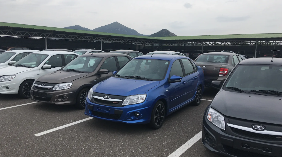 Поначалу казалось, что попали на какую-то специальную распродажу. Гранты разного цвета, комплектаций, но почти все — не старше двух-трёх лет. На лобовых — маркеры: 21 000, 28 000, 31 000 км. Состояние — как у новых.