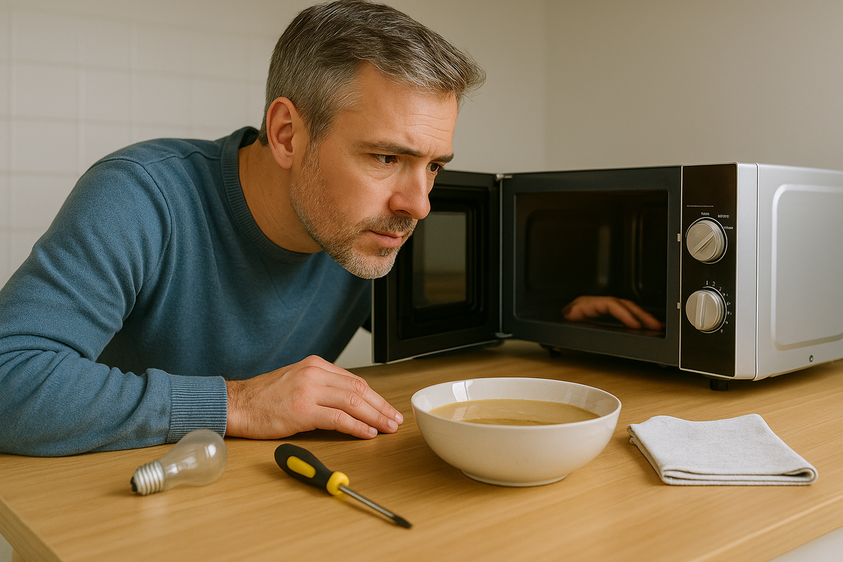 — «Андрей Фёдорович, я сам починю! Там дел на пять минут!» Вот честно, за двадцать лет работы слышал это не раз. Иногда — заканчивается победой, иногда… новым визитом мастера и грустным вздохом владельца. Микроволновка — не чайник и не утюг, здесь с «пятью минутами» надо быть аккуратнее. Так что разложим всё по полочкам: что действительно можно сделать своими руками, а что лучше не трогать даже с энтузиазмом и отвёрткой. Давай сразу — без иллюзий. Внутри микроволновки есть детали, которые накапливают электричество и после отключения из сети! — «Отключил — и можно лезть?» Нет! Некоторые части могут дать такой разряд, что после этого микроволновку уже точно не захочется чинить… • Всё, что связано с электроникой, платой управления, магнетроном, высоковольтными элементами — НЕ трогаем. • Всё, что снаружи: дверца, тарелка, лампочка, ролики — можно и нужно обслуживать самому. Простое правило: если нужен только скотч и губка — это домашний ремонт. Если понадобился паяльник и «гугл» — лучше по