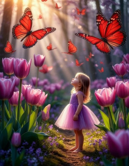 Опять чего-то фантазирую. Живу в мире иллюзий))))) Magical fairy tale, lilac transparency in sunlight, large simply huge tulips in a large vase on the window, next to the vase stands a tiny girl Thumbelina looking up at the flowers, wearing a tulip skirt, barefoot, curtains of transparent tulip, hyper-detailing, sun glare, hyper-realism, macro photography #neuroart #нейроарт #ai #ии #нейросеть #картинки #искусственныйинтеллект #цифровоеискусство #digitalart #арт #art #prompt #промпт #подсказка