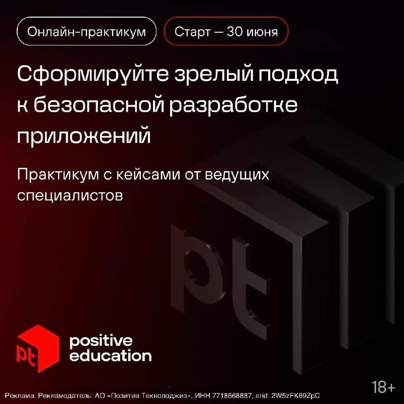 Уязвимости снова всплыли на проде. Проблема — не в сканерах. Проблема в том, что безопасность не встроена в процесс. Практикум по безопасной разработке — это способ перестроить работу команды, а не просто пройти «обучение». 30 июня стартует онлайн-практикум, где вы: — разберете реальные кейсы AppSec-внедрений, — освоите SAST, DAST, SCA, фаззинг, threat modeling, — прокачаете навыки на облачном стенде, — получите поддержку инженеров и полезные материалы для работы Кто ведет: • Артем Пузанков — выстраивал AppSec-процессы в enterprise-компаниях • Светлана Газизова — внедряла DevSecOps в «невнедряемых» условиях • Алексей Жуков — практик, прошедший путь от стажера до лидера AppSec И ещё 6 инженеров Positive Technologies, которые ежедневно решают задачи безопасной разработки на практике. Узнаете, как ускорять релизы, снижать издержки и наконец договориться с разработчиками. 6 недель | онлайн | стоимость по запросу Узнать подробнее можно на сайте Positive Education Это #партнёрский п