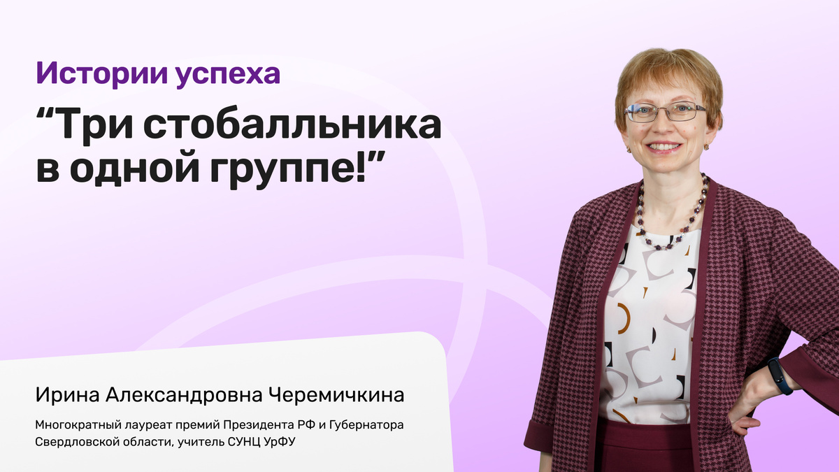 Ирина Александровна Черемичкина - это стабильность и профессионализм. Ежегодно она выпускает несколько стобалльников. А также высокобалльников. Мы не могли упустить шанс побеседовать с этим замечательным преподавателем!