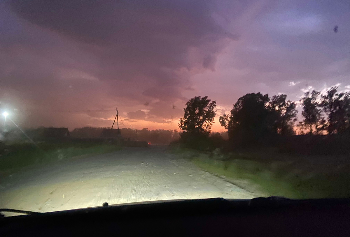 Мы мучаемся от изнуряющей, летней жары. Печёт так, что кажется можно сварится. Воздух на улице прогрелся и прям парит, температура за 40. Спасает прохладный душ, вентелятор и расположение квартиры на две разные стороны. С утра в одной половине квартиры жарко, а в другой прохладно, а к вечеру наоборот. По прогнозу погоды на ближайшие два дня было солнечно, без гроз, ветра и осадков. В такую жару огород поливаем каждый день, а то и два раза в день утром и вечером. Вечером поехали поливать огород и вот почти уже все полито, осталось накачать в бочку воду и тут вдруг в небе засверкало и понеслось. Поднялся сильный ветер, мы собрались и быстрее домой. Дома поглядывала по камере что же происходит на участке. Очень переживала за подвесные кашпо и стоящие на земле горшки с петуниями. За ветром как и поливается пришел дождик. Дождь был не сильный, слегка сбрызнул и вскоре все утихло. С утра едем на дачу и тут я увидела, как мои помидоры наполовину согнутые, а какие то и вовсе сломанные п