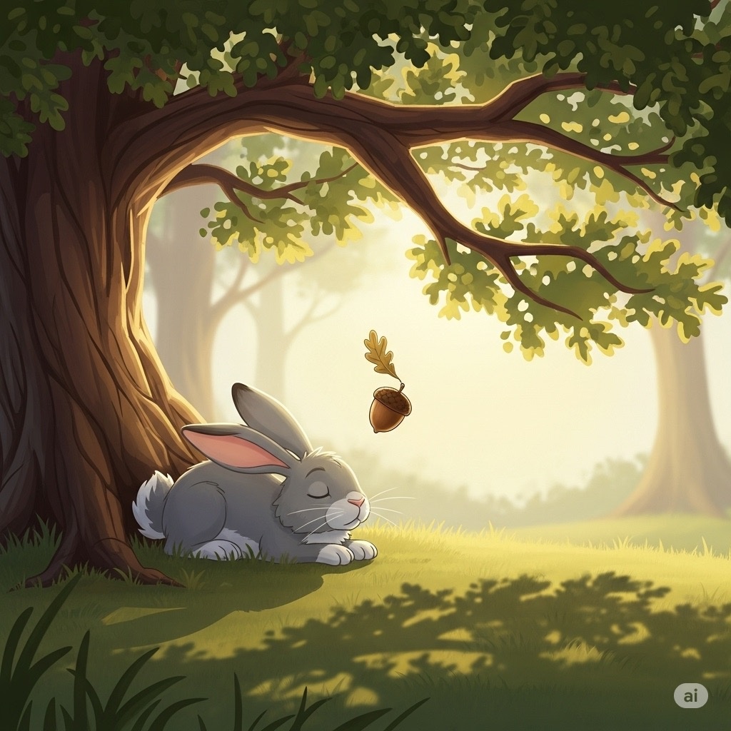 Жил-был заяц-трусишка. Лёг он как-то отдохнуть под дубом. На дуб опустилась ворона и кинула вниз жёлудь. Угодил жёлудь зайцу в лоб. Перепугался трусишка, вскочил и поскакал со всех ног, думал, небо рушится и упал ему на голову обломочек. Бежит он, а навстречу волк: — Ты куда, заяц — Беги, братец! Небо рушится! Поверил глупый волк и припустился вместе с зайцем. Навстречу им лиса. Помчалась вместе с ними, даже не спросила, куда и зачем. Бегут втроём. Добежали они до укромного места и спрятались. Место укромное, только есть там нечего. Проголодался волк и съел зайца. Утолил ненадолго голод. И опять есть захотел, стал поглядывать на лису. Догадалась лиса, что у волка на уме, и решила перехитрить его. Огляделась— видит: сорока на дереве. Показала на неё волку и спрашивает: — Слушай, серый, хочешь стать пёстрым как сорока Не узнают тогда тебя люди! — Хочу,— говорит волк. — Пойдём к реке, там всегда буйволы лежат в воде. Задерём одного, сквозь тушу пролезем и станем пёстрыми. Пошли вдоль рек