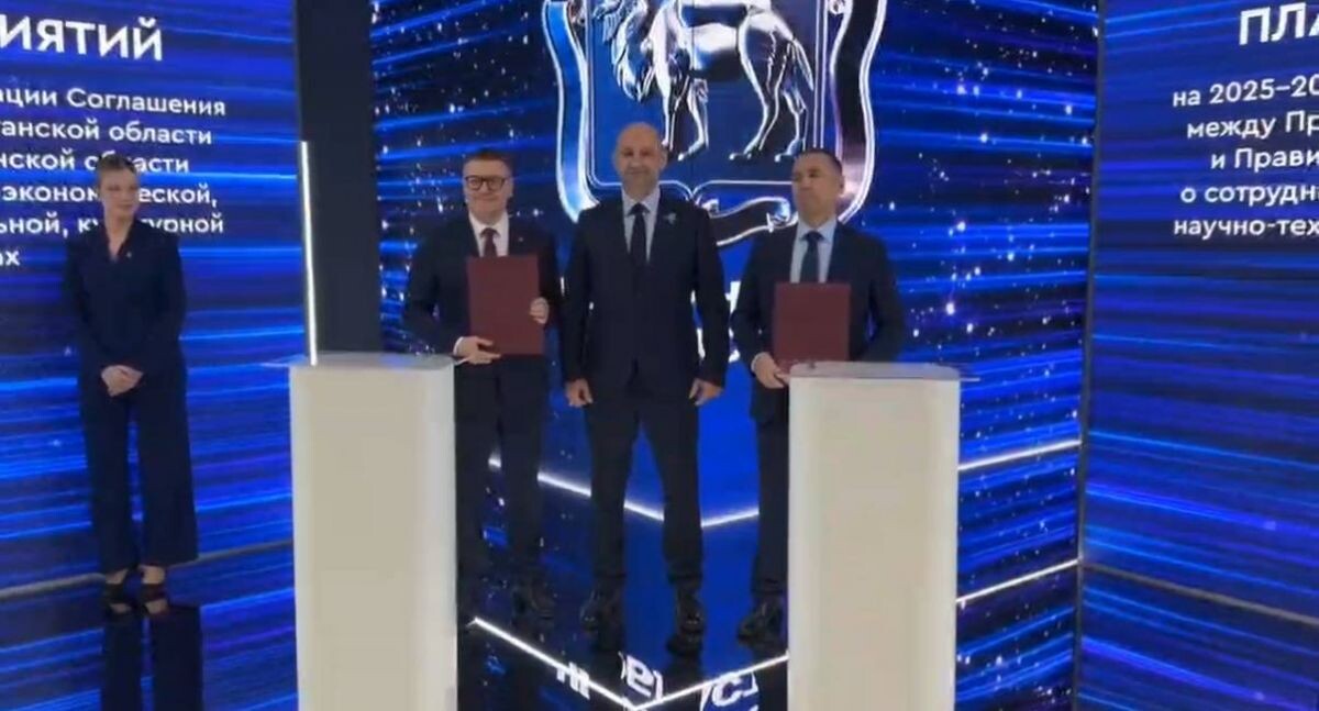 На Петербургском международном экономическом форуме губернатор Челябинской области Алексей Текслер и глава Курганской области Вадим Шумков подписали план мероприятий по сотрудничеству между регионами на период до 2027 года. Об этом сообщили в Telegram-канал «УрФО_ИНФО».