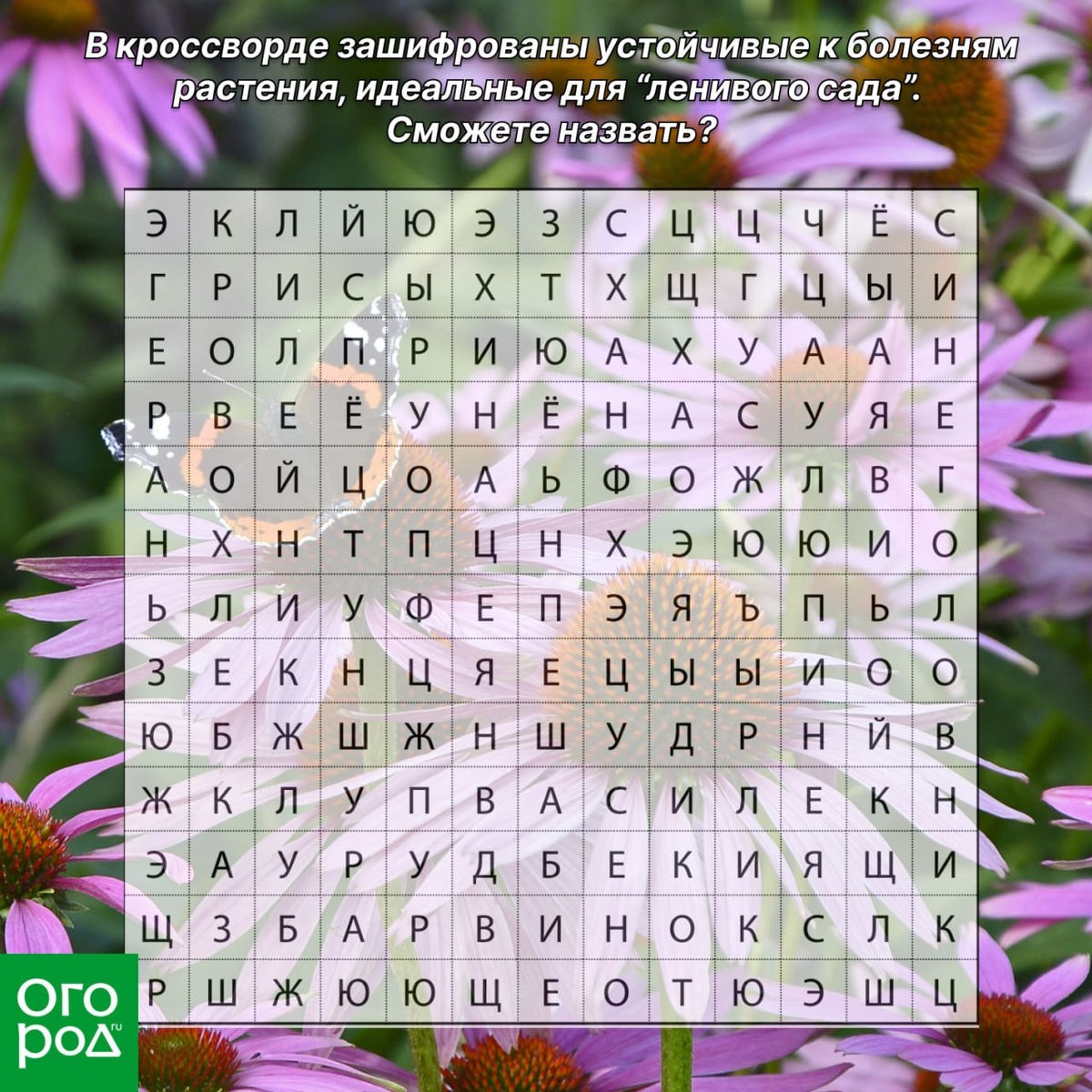 В кроссворде зашифрованы устойчивые к болезням растения, идеальные для “ленивого сада”. Сможете назвать?