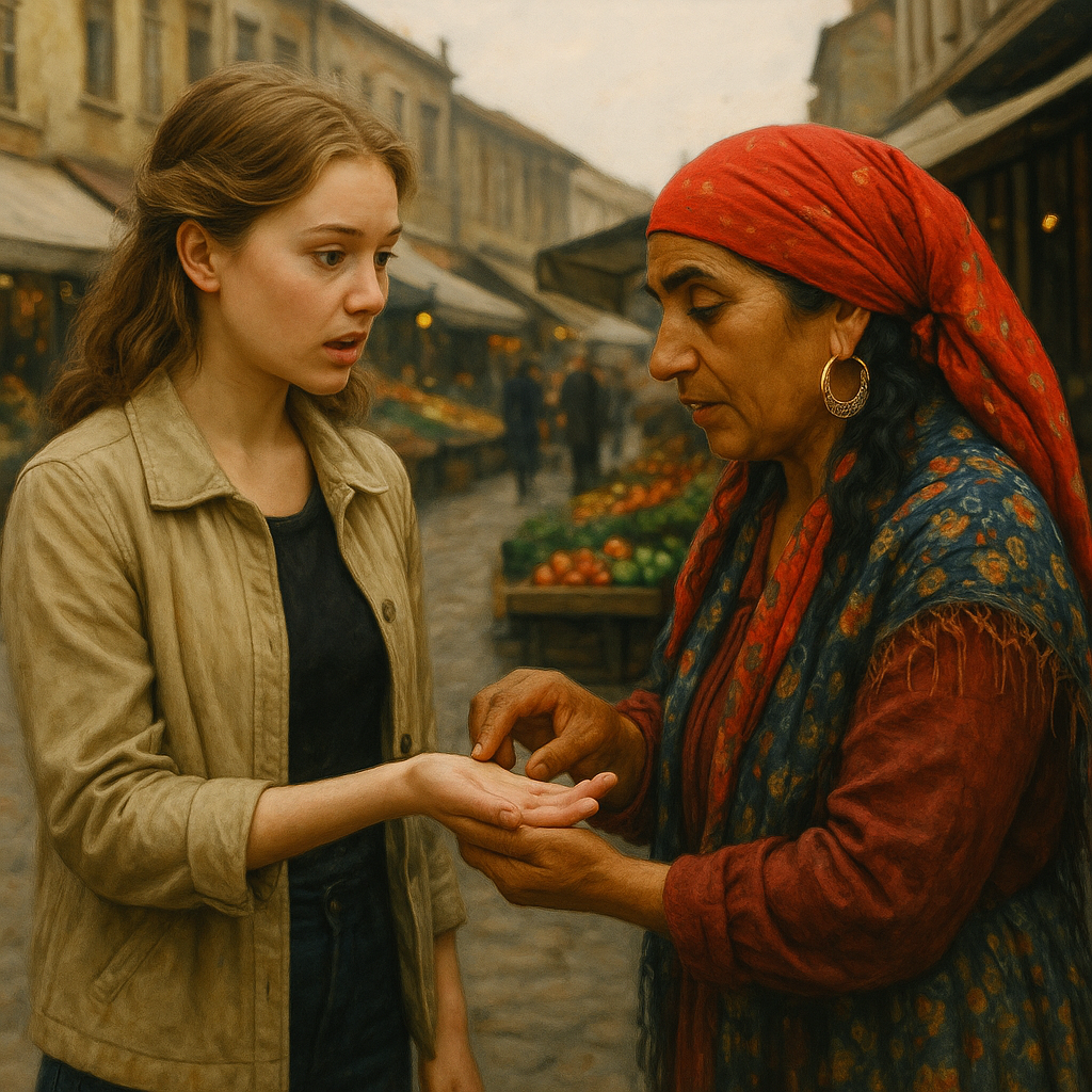 Цыганка взяла мою ладонь… взглянула… задержала взгляд буквально на несколько секунд… и вдруг резко отдёрнула руку, шагнула назад, повернулась и почти бегом ушла прочь.