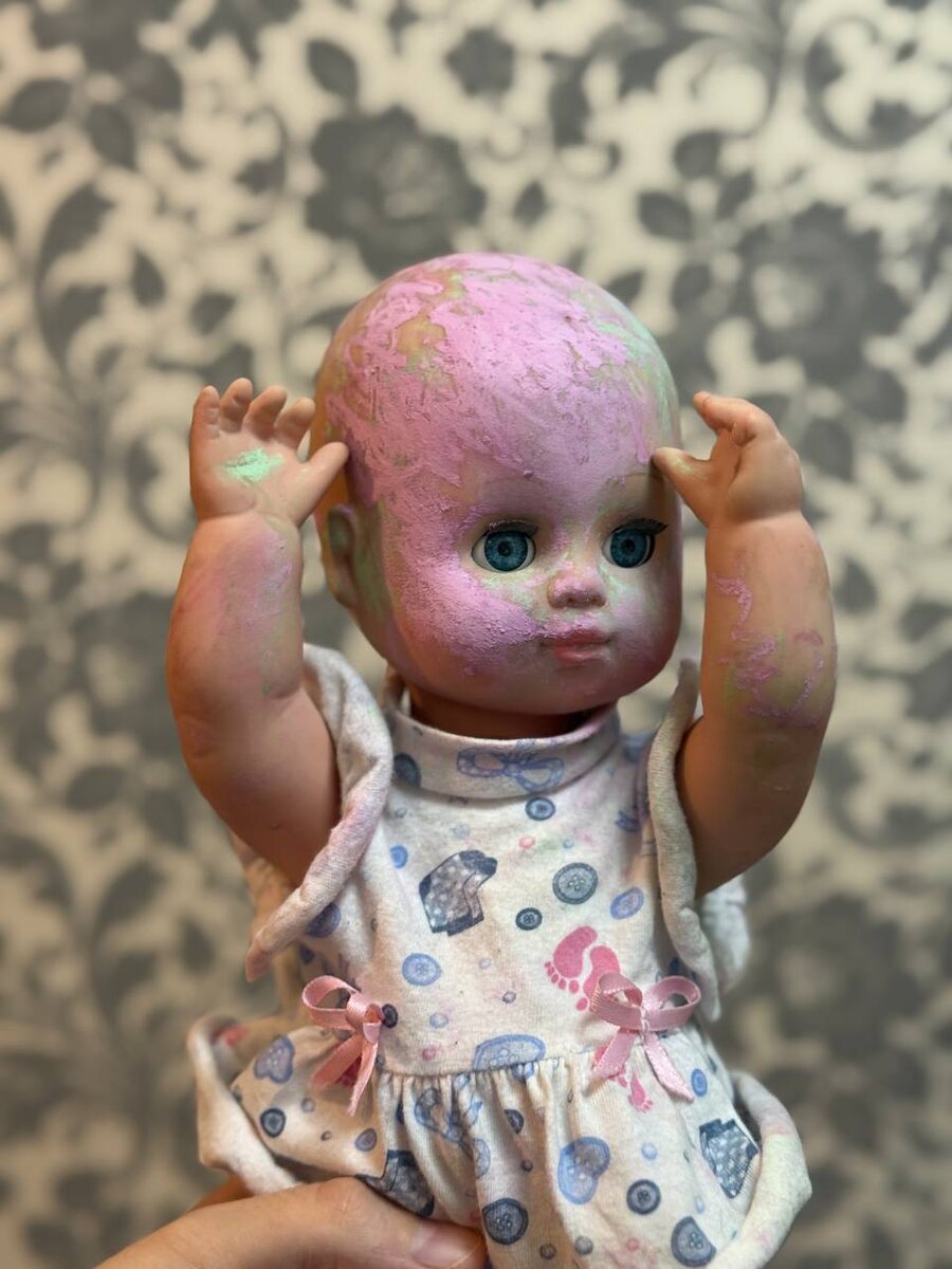 И вашему вниманию представляется кукла Олеся, которой Лиза старательно делала грим. 😄 По-моему, оттенки подобраны со вкусом, хорошо сочетаются)