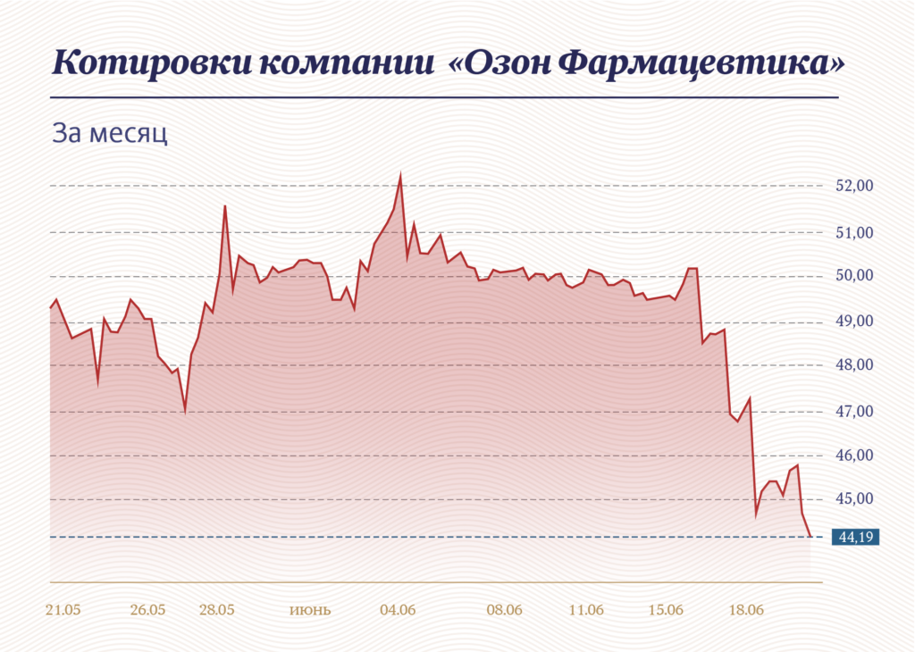 Эту неделю российский фондовый рынок завершает новостями от одного из лидеров фармы — «Озон Фармацевтики». Компания, специализирующаяся на производстве препаратов-дженериков, сообщила 20 июня, что успешно провела вторичное публичное предложение (SPO) и смогла привлечь от инвесторов 2,8 млрд рублей. О чем идет речь? SPO, или secondary public offering, — это ситуация, когда компания, которая уже представлена на бирже, то есть уже является публичной, выпускает еще акции и размещает их дополнительно. Собственно, в рамках такого SPO «Озон Фармацевтика» предложила 65,9 млн акций по 42–48 рублей за штуку. Продажи в итоге были по нижней границе — то есть по 42 рубля. Рынок, правда, особой радости не проявил: котировки компании с 16 июня на фоне новостей о вторичном размещении потеряли почти 12% и около 4% за 20 июня, когда «Озон Фармацевтика» рассказала, как все прошло. При этом IPO компании в октябре инвесторы встречали с гораздо большим энтузиазмом. Размещение шло по верхней границе, то есть