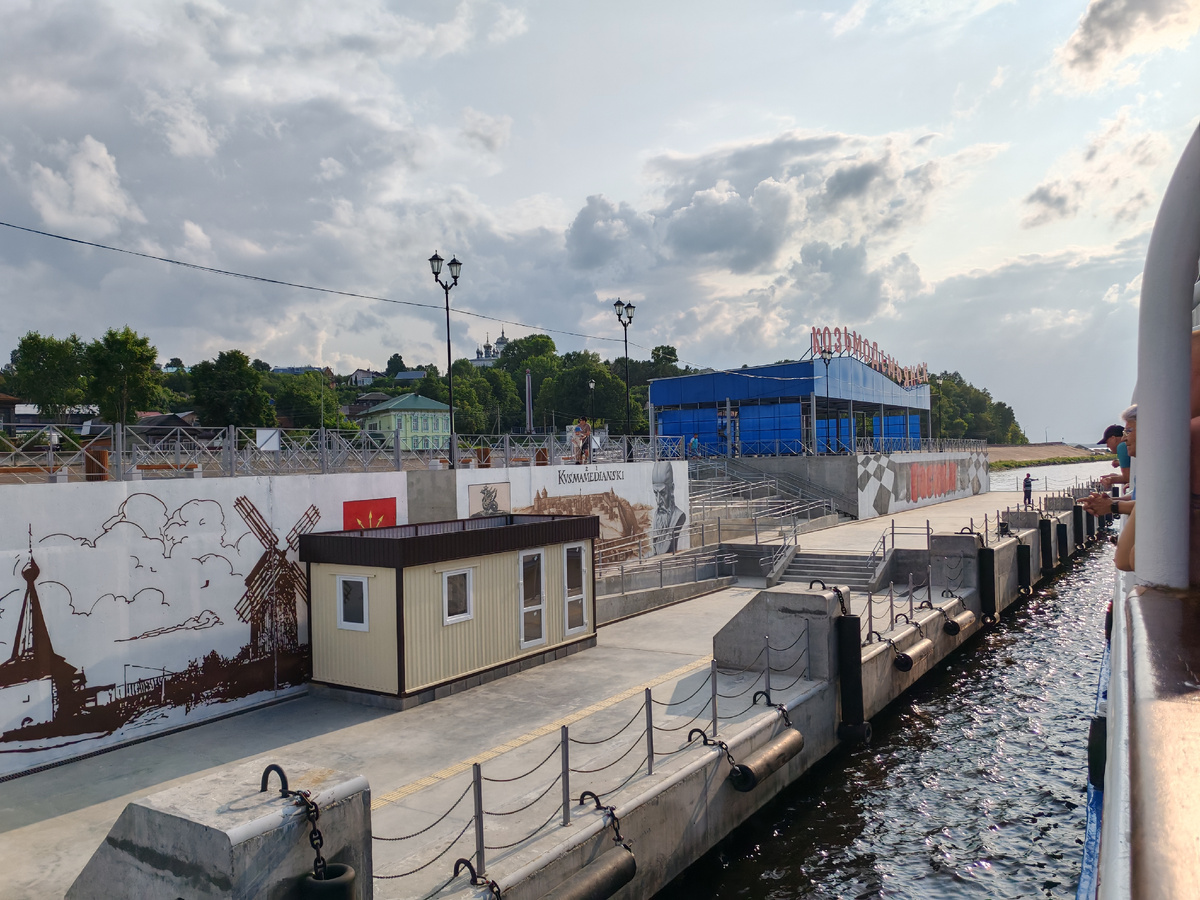 Наше путешествие на теплоходе А.И.Герцен из Казани в Нижний Новгород Чебоксарами в первый день не ограничилось -( про Чебоксары читать здесь) . Отплыли мы от чувашской столицы в 14.00, а уже в 17.00 причалили (чуть не сказала, бросили якорь, хотя может и бросили) к Козьмодемьянску.