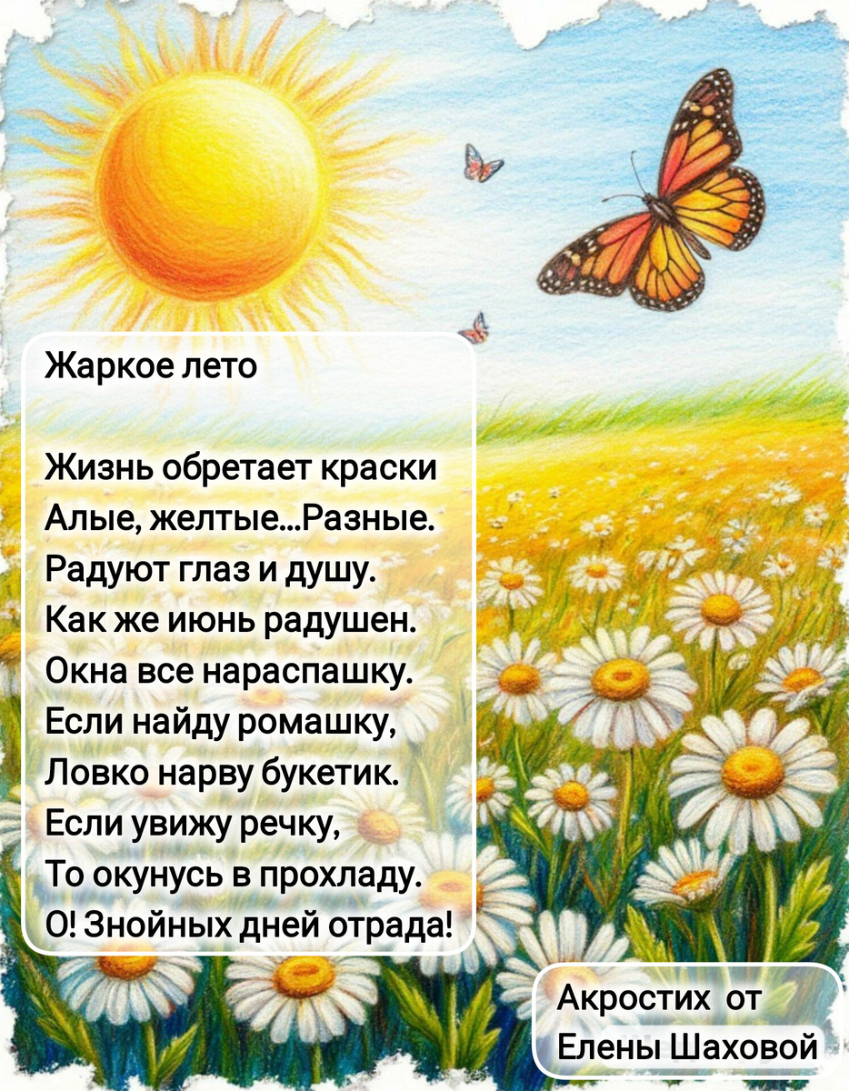 В нашем ТГ - Поэзия рулит завершилась поэтическая игра Летняя АКРОшка. Авторы писали АКРОСТИХИ. Самые интересные работы опубликованы в наших интернет сообществах в виде иллюстраций со стихами: здесь, ТГ, ВК, ОК, Инста. Пишете стихи? Присоединяйтесь к нам в Телеграм: