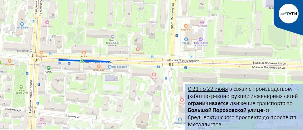 🚫 Ограничения движения в Красногвардейском районе С 21 по 22 июня в связи с производством работ по реконструкции инженерных сетей ограничивается движение транспорта по Большой Пороховской улице от Среднеохтинского проспекта до проспекта Металлистов. 🙌 Пресс-сек Красногвардейского